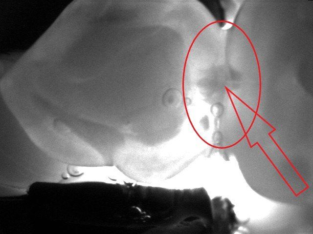 Un particolare utilizzo di due fasci laser e di un sensore che trasforma la transilluminazione in immagine visibile sul monitor del computer trova un utilizzo anche nella diagnosi della carie qualora l’immagine radiografica risulti dubbia o non dirimente di lesione cariosa. Ecco un esempio in cui radiologicamente si vede un’immagine non chiaramente rapportabile ad una carie come indicato dalle frecce nella radiografia a fianco. Con l’ausilio del laser si riesce ad evidenziarne completamente i limiti e la grandezza come visibile dalle due immagini e dalle frecce che indicano la carie. Tuttavia, per correttezza, va spiegato che l’efficacia di questa indagine può essere effettuata solo in determinate circostanze cliniche e che le radiografie risultano sempre necessarie.